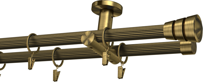 Karnisz podwójny sufitowy na wsporniku prostym daje nam możliwość zawieszenia zasłon i firan w dowolnej odległości od okna. Rurka po zamontowaniu znajduje się w odległości 5.80 cm od sufitu.