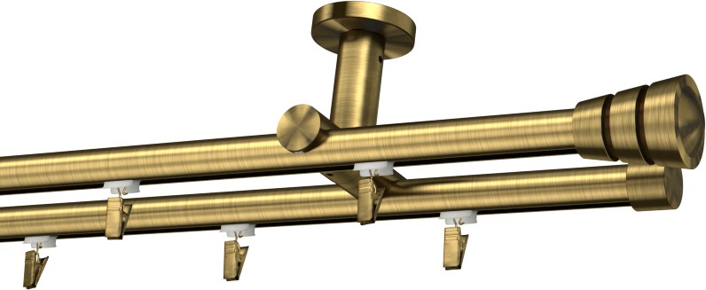 Karnisz podwójny sufitowy przesuwny z wspornikiem w kolorze mosiądz antyczny i końcówkami Fedora o długości całkowitej 126 cm w cenie 194.70zł. Zestaw zawiera profile o łącznej długości 120.00 wsporniki oraz 12x ślizg z żabką na pierwszy profil i 12x ślizg z żabką na drugi.